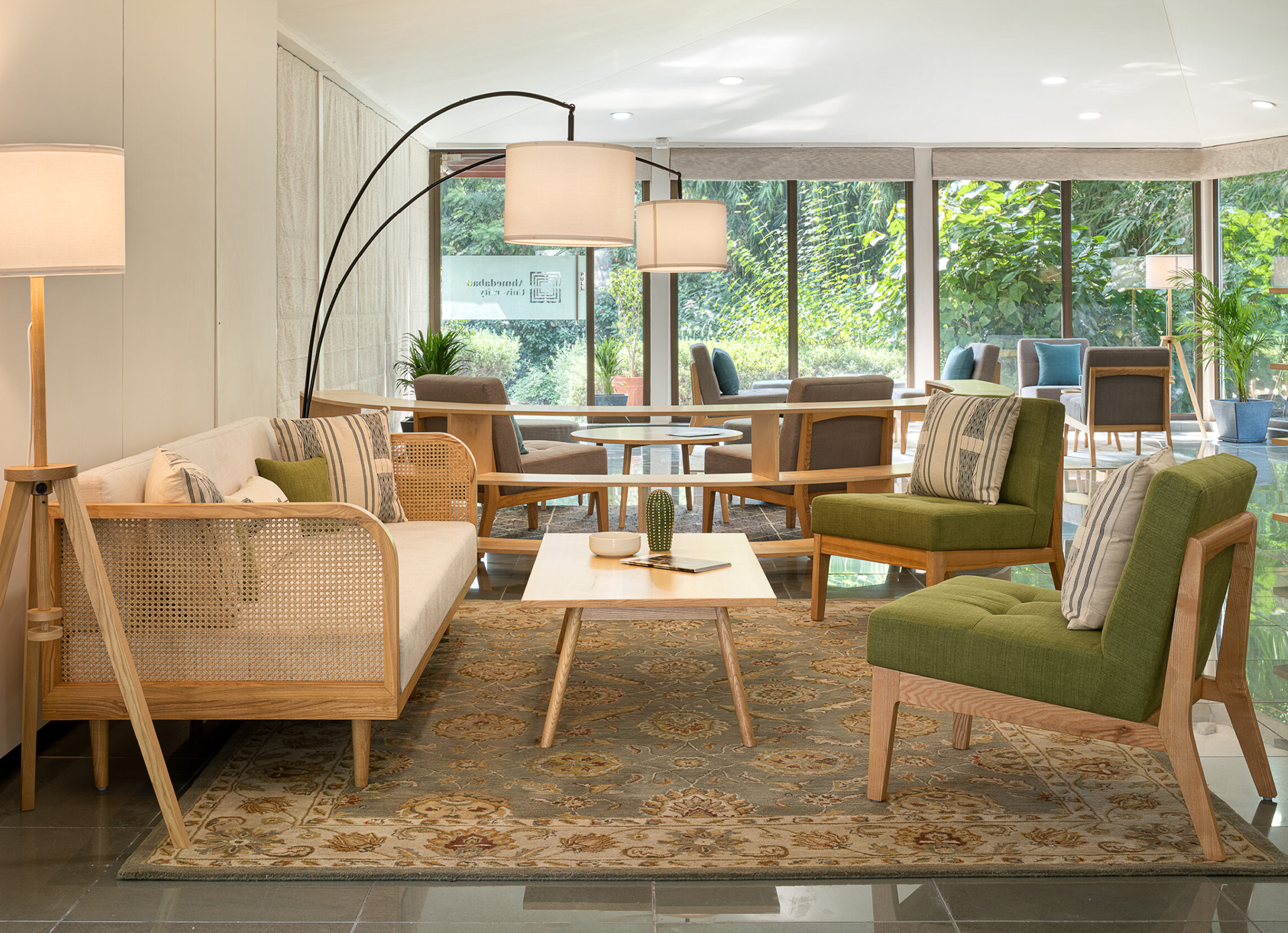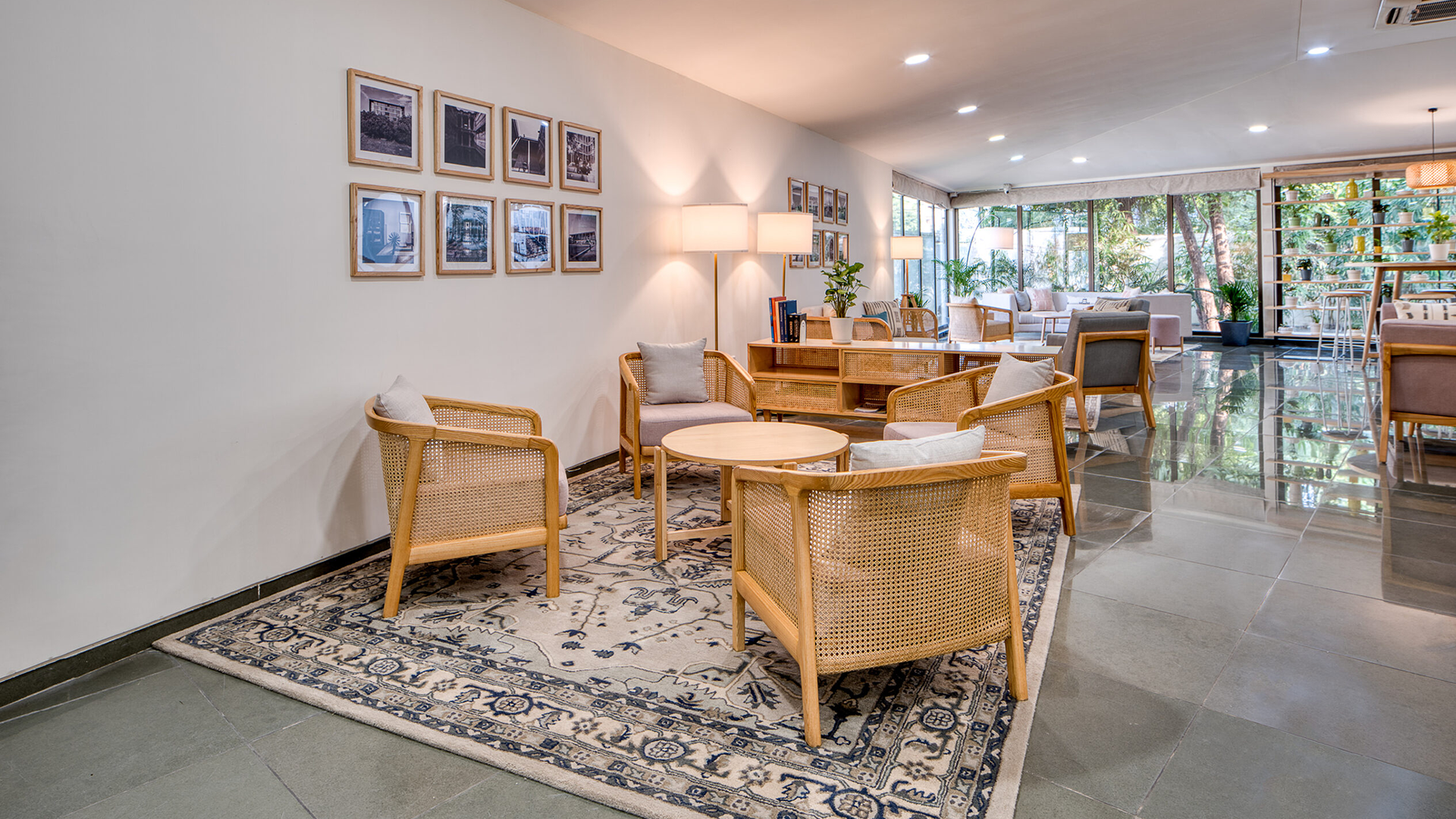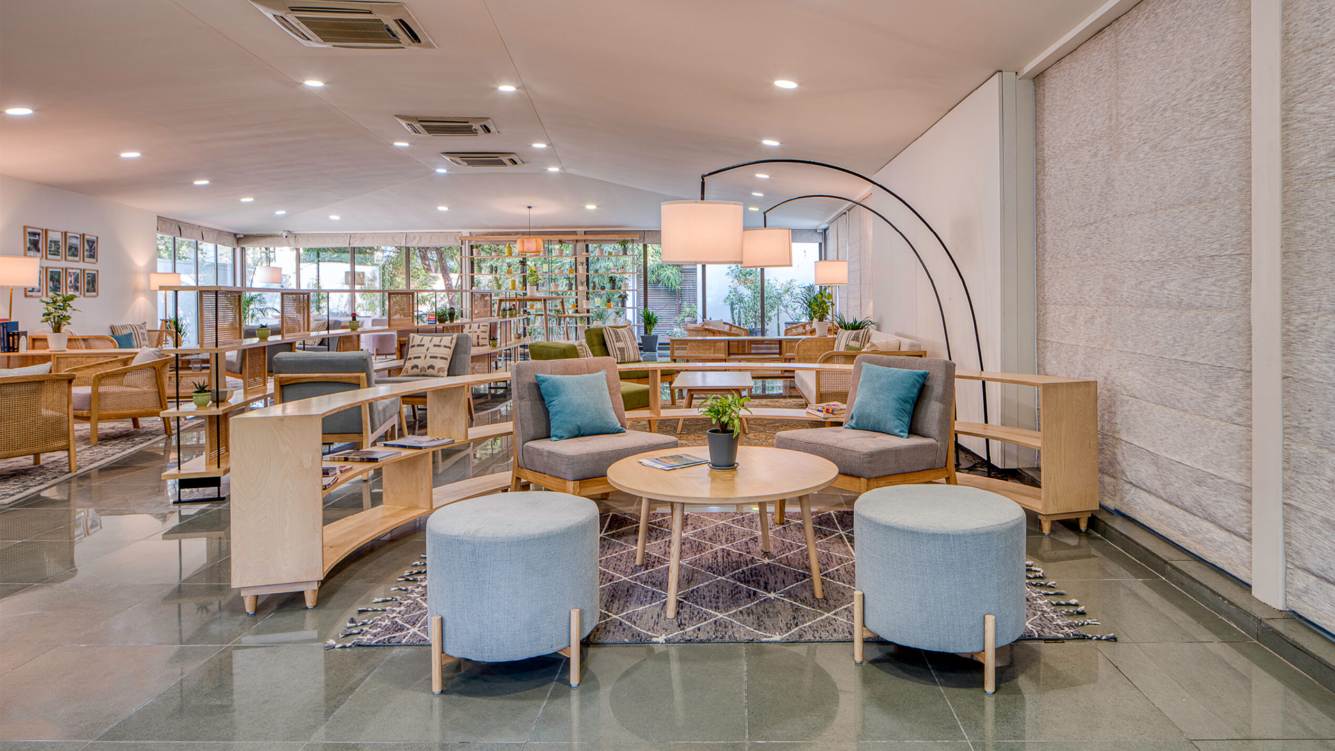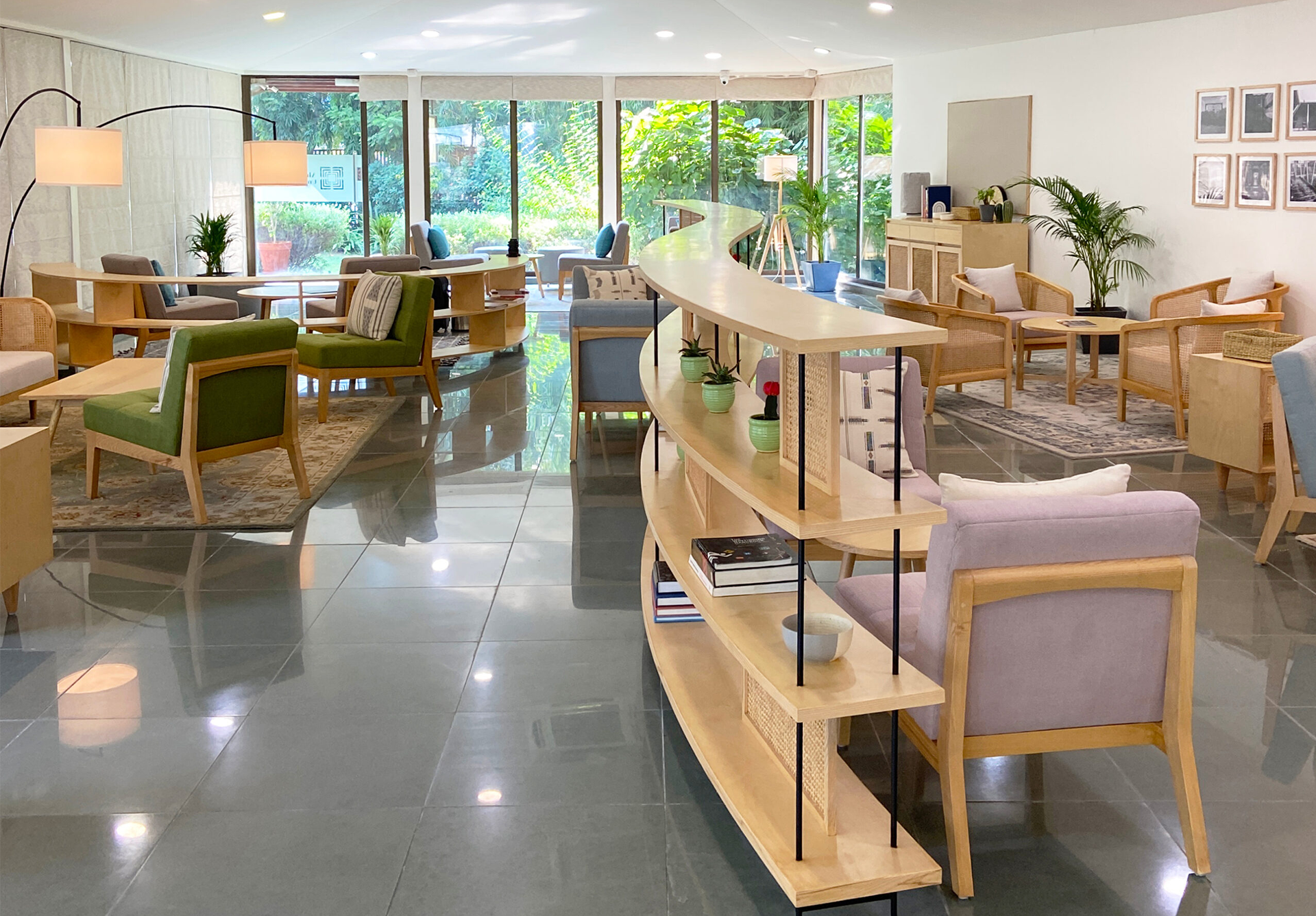 Each hub is uniquely designed, with custom-designed ashwood furniture, hand-knotted rugs, lighting and accessories. The light and soft colour palette of the furnishings, combined with warm lighting and stylish rugs, create a pleasant and relaxed space where one feels at ease.